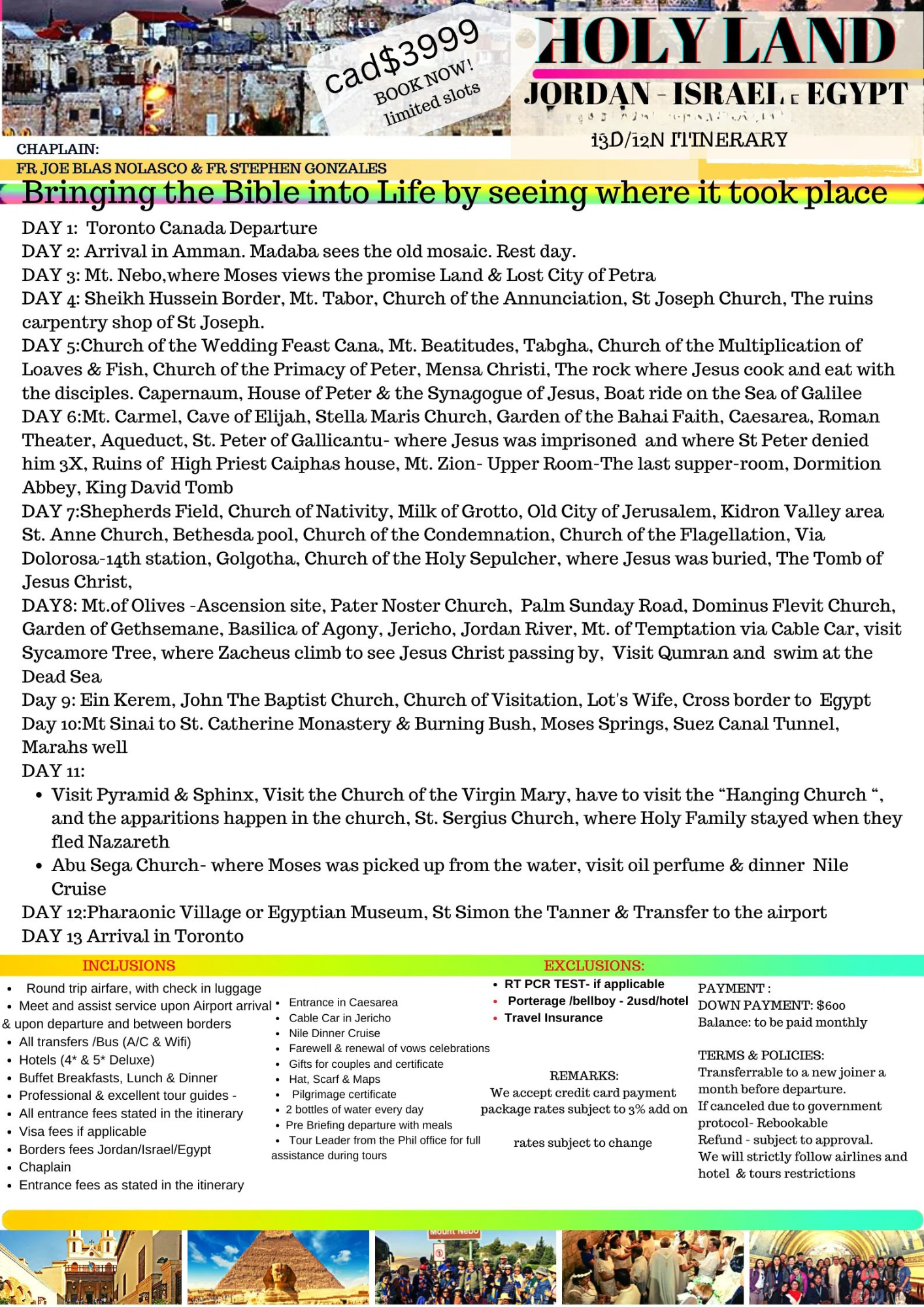 NOTE: Once registered we will send you confirmation form and due date for the down payment $600usd .Balance will be paid in terms. The rates above is base on paying Cash basis. Paying using credit card rate is subject to change.