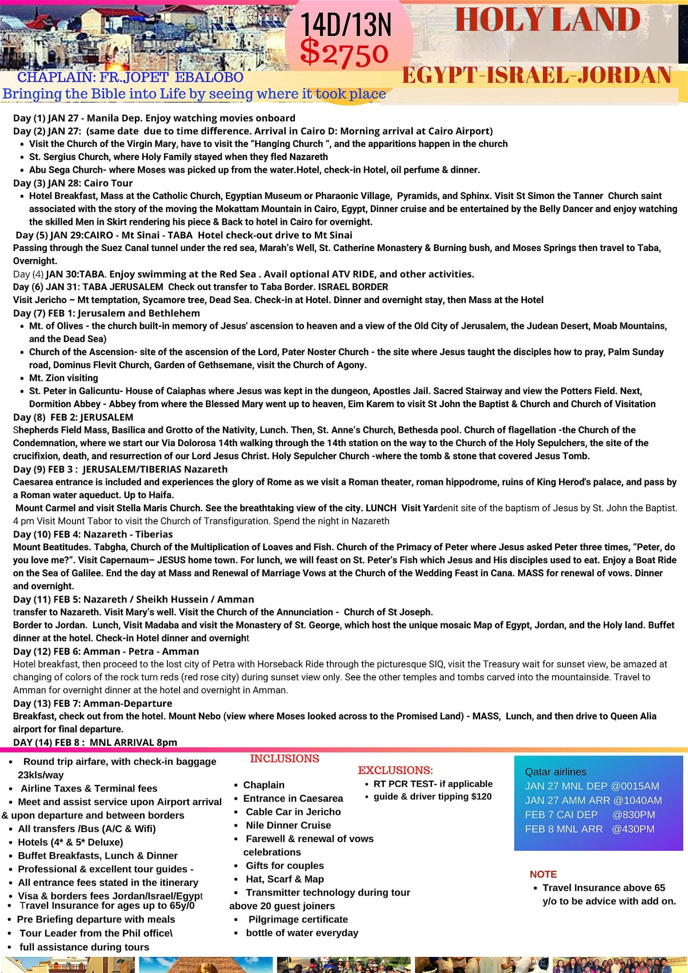 TOUR PACKAGE RATE : $2750 ( see inclusions)